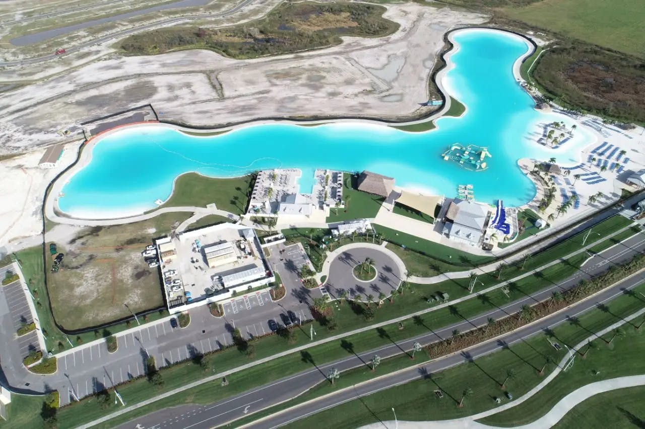 The 5-acre lagoon within the Southshore Bay Community is one of the nation’s first Crystal Lagoons® amenity. Here, residents and guests can enjoy the crystal-clear waters by lounging by the water, paddle boarding, kayaking, swimming, and many other activities. The lagoon offers lawn games, beach volleyball, a swim-up bar, and cabana cove. Our team provided site engineering, surveying, permitting, and construction administration services for the lagoon in addition to photometric design plans and drone aerial mapping.